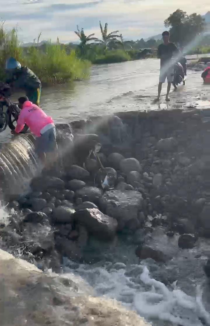 Pantauan di lokasi menunjukkan struktur crossway ambles dan tergerus air. Meski kondisi sangat berbahaya, sejumlah warga terlihat nekat menyeberang dengan berjalan kaki sambil menuntun kendaraan. Situasi ini menimbulkan kekhawatiran akan potensi terjadinya kecelakaan dan korban jiwa.