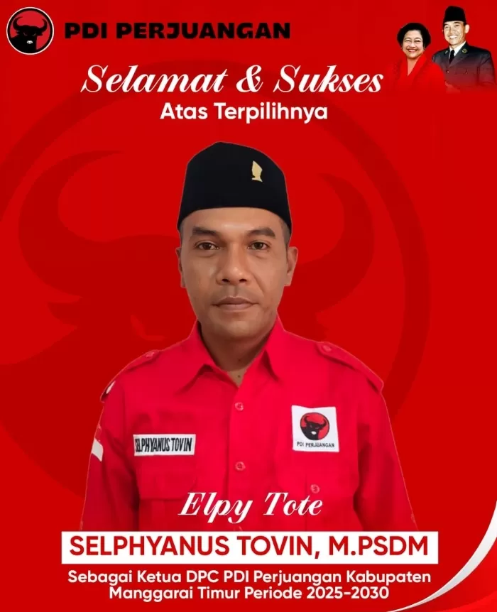 FAJAR FLORES – Selphyanus Tovin resmi ditetapkan sebagai Ketua Dewan Pimpinan Cabang (DPC) Partai Demokrasi Indonesia Perjuangan (PDI Perjuangan) Kabupaten Manggarai Timur, Nusa Tenggara Timur, untuk masa bakti 2025–2030.