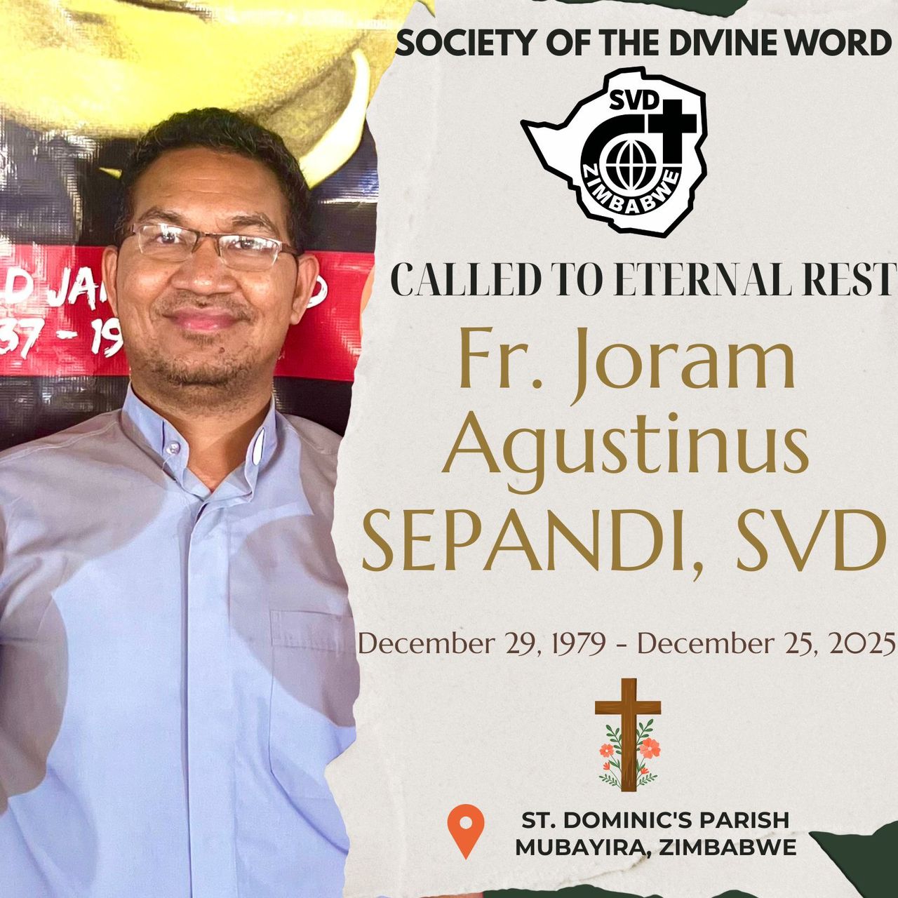 FAJAR FLORES – Suasana duka menyelimuti Paroki St. Dominic Mhondoro Mubaira Provinsi Mashonaland West, Zimbabwe (Afrika bagian selatan) setelah Pastor Asal Manggarai-Indonesia, Agustinus Joram SVD, meninggal dunia usai misa malam natal, 25 Desember 2025.