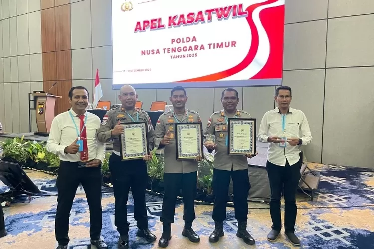 FAJAR FLORES – Kepolisian Daerah Nusa Tenggara Timur (Polda NTT) memberikan apresiasi khusus kepada Polres Manggarai Timur atas kinerja dan dedikasi selama tahun 2025. Penghargaan tersebut diserahkan langsung oleh Kapolda NTT, Irjen Pol Dr. Rudi Darmoko, S.I.K., M.Si., pada kegiatan Apel Kepala Satuan Wilayah (Kasatwil) Polda NTT Tahun 2025 yang berlangsung di Hotel Harper, Kota Kupang, Rabu (17/12/2025).