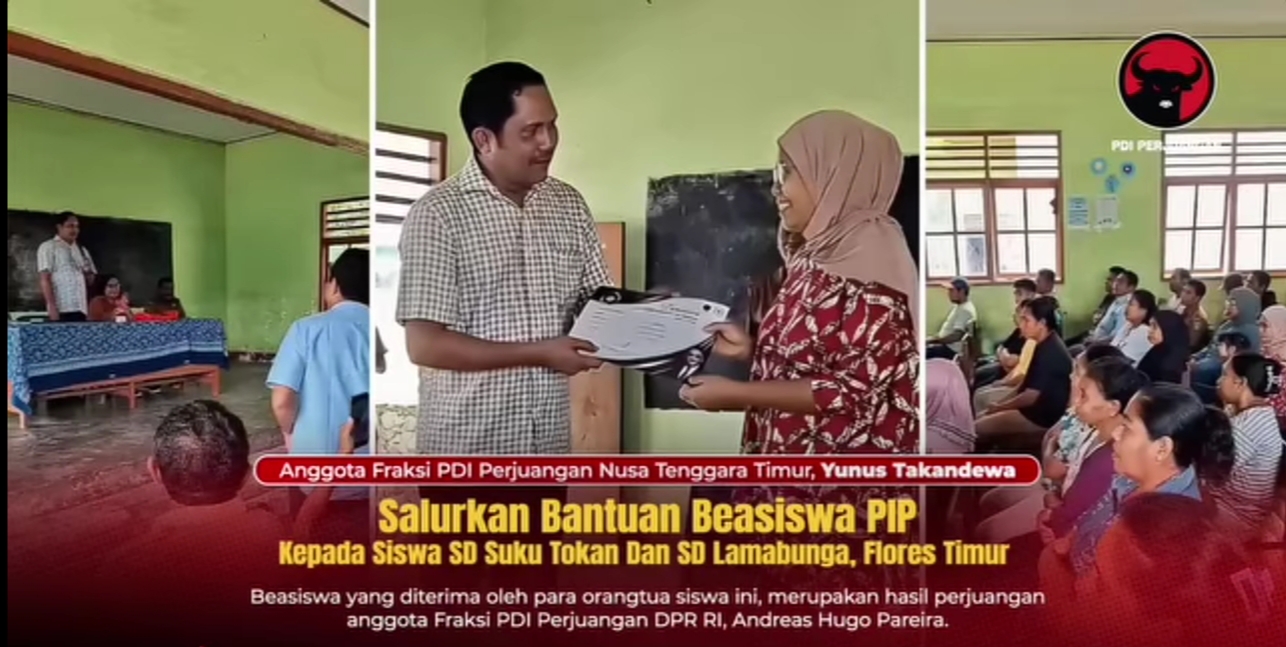 FAJAR FLORES – Anggota Fraksi PDI Perjuangan Provinsi Nusa Tenggara Timur (NTT), Yunus Takandewa, menyalurkan bantuan beasiswa Program Indonesia Pintar (PIP) kepada para siswa SD Suku Tokan dan SD Lamabunga, Kabupaten Flores Timur, pada Selasa, 9 Desember 2025.